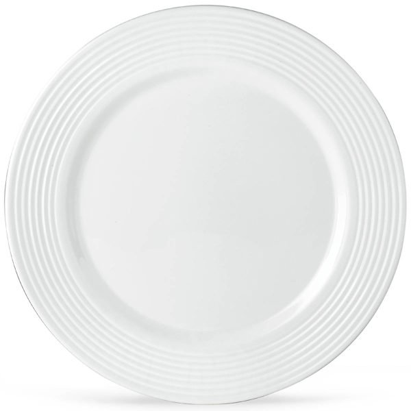 The Tin Can Alley Four-Degree Dinner Plate adopts the tin can’s emblematic corrugated rings on durable white porcelain for a simple, aesthetic design. This dishwasher and microwave-safe item suits any occasion and complements a variety of dinnerware styles.